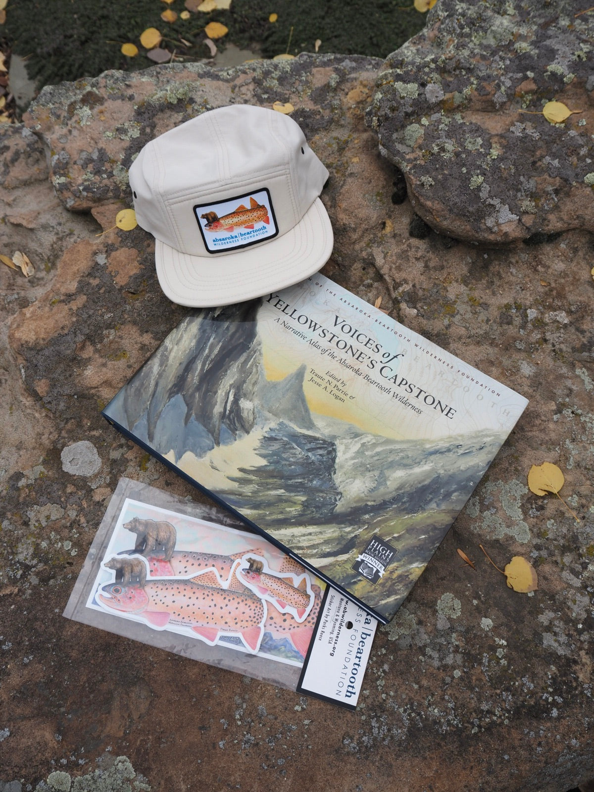 Celebrate the wilderness-lover in your life this holiday season with our Holiday Wilderness Package — a curated combo of our popular five-panel hat, a hardcover edition of the beautiful "Voices of Yellowstone's Capstone" atlas, and an ABWF sticker pack. This package makes a great gift for anyone in your life who loves the wilderness and wants to show their support for wilderness stewardship.